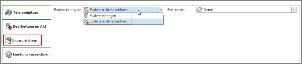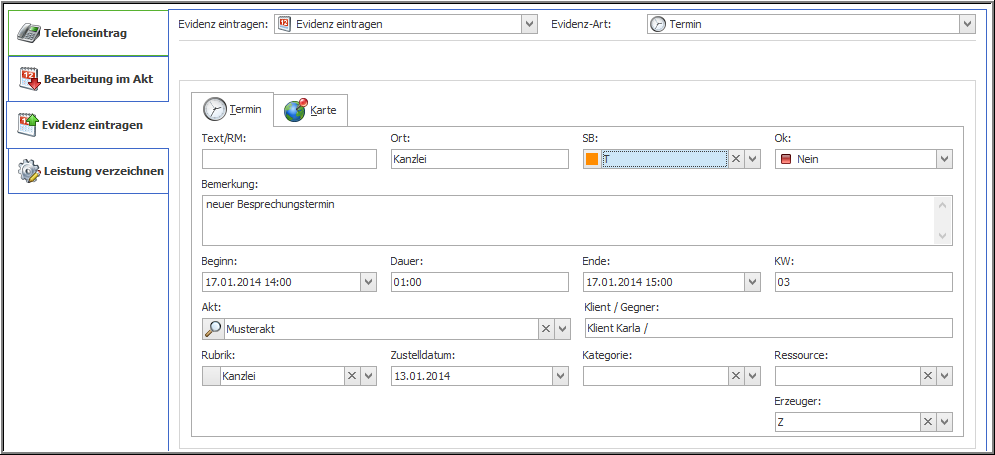 Anschließend können Sie eine neue Evidenz für Ihr Telefonat verzeichnen.