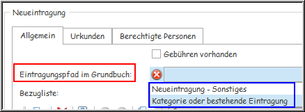 Dafür stehen die Alternativen „Kategorie oder Bestehende Eintragung“ und „Neueintragung“ zur Verfügung.