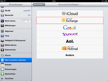 Um paraSync zu nutzen, sind die Zugangsdaten von Microsoft Office 365 oder vom eigenen Exchange-Konto auf dem iPad oder iPhone einzugeben.