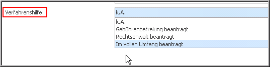 Legt fest, ob Verfahrenshilfe beantragt wurde bzw. ob der Antragsteller eine juristische und/oder finanzielle Unterstützung für den eingebrachten Antrag beansprucht hat.