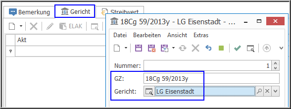 •Gericht mit GZ (wird automatisch mit dem ERV-Rückverkehr bei den entsprechenden Elementen befüllt)