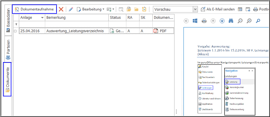 Gleich bei Aktanlage können Dokumente über die Dokumentaufnahme in den neu angelegten Akt aufgenommen werden.